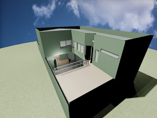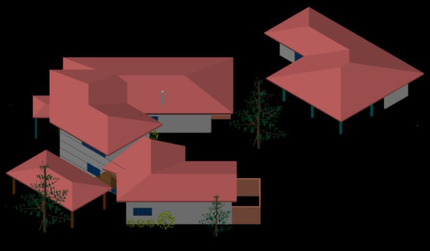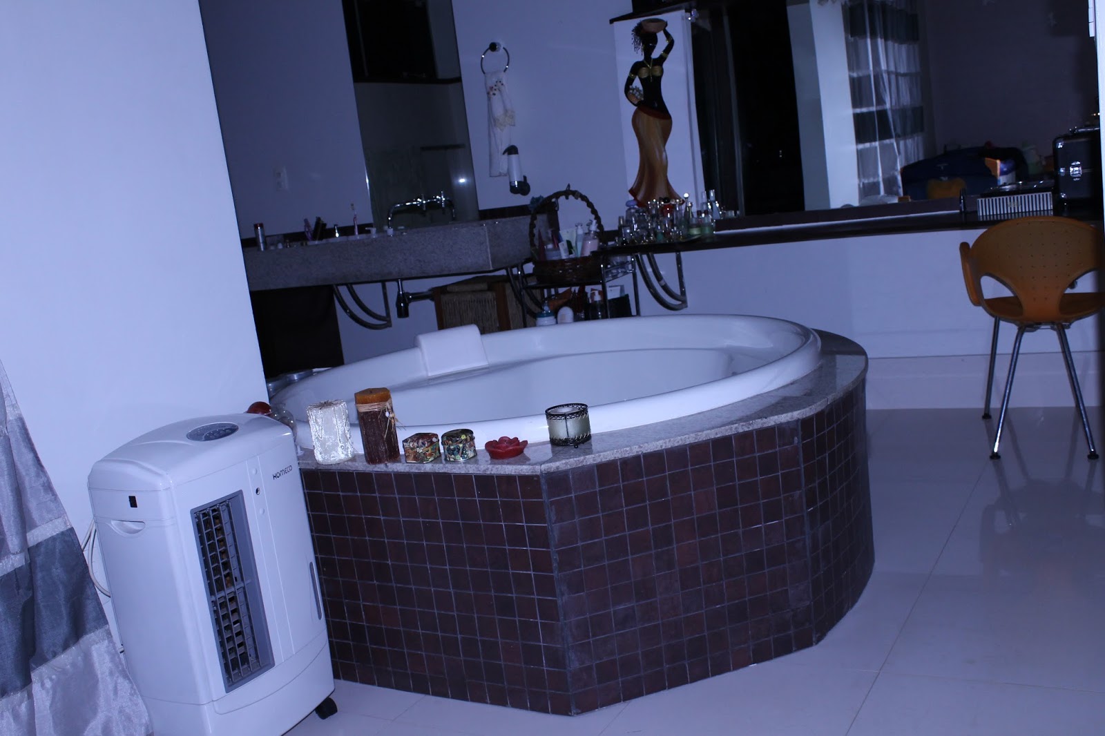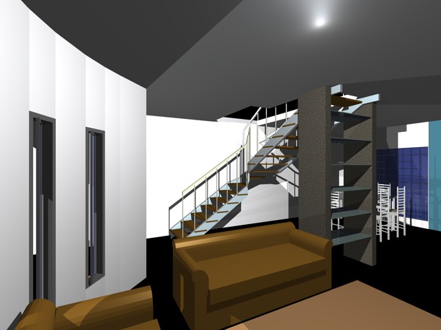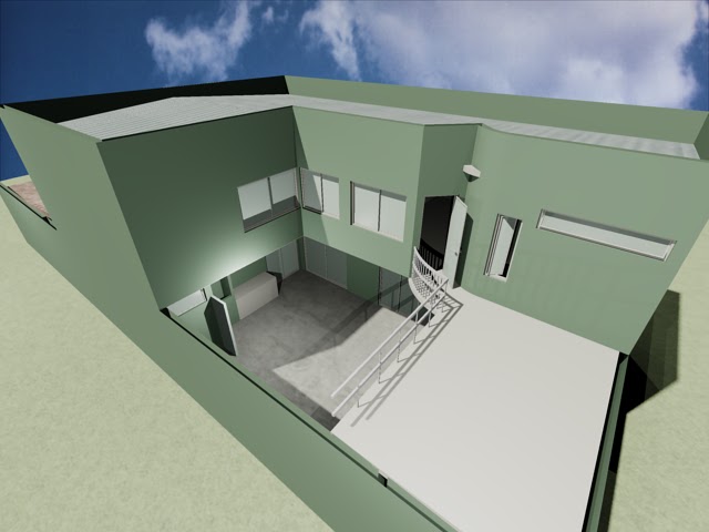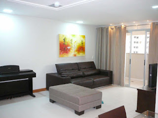 A área íntima desta casa tem uma peculiaridade: Se liga com a sala de Jantar e com a cozinha, assim, uma pessoa pode ir fazer um lanche, vestido em pijamas, sem que as visitas o vejam passar.